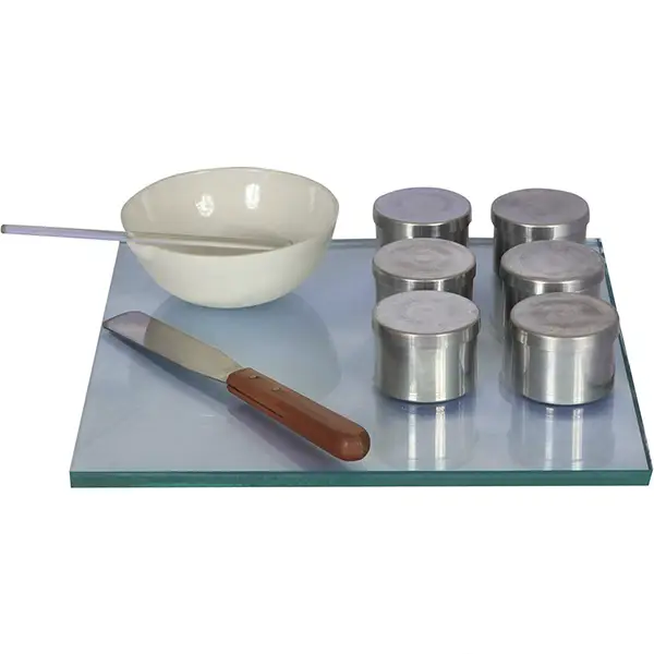 • Supplied with 300 x 300 mm glass plate, 3 mm diameter x 20 cm length stainless steel rod, porcelain pot, elastic spatula and 6 pieces of 75 mm diameter x 30 mm height sample box.