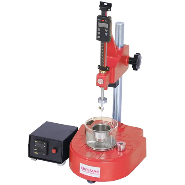Standart penetrometre, sağlam bir yapıya sahip olup, alüminyum taban plakası ve seviye vidaları, kaplamalı dikey çubuk ve mikrometrik dikey ayar cihazı ile donatılmıştır.