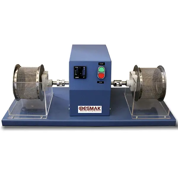 Deney tamburları, su ile yağlanan rulmanlar üzerinde desteklenmiş olup, tamburun altında engelsiz boşluk sağlanmaktadır ve cihaz iki adet su teknesi ile birlikte sunulmaktadır.